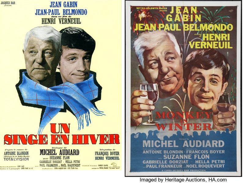 겨울 원숭이는 1962년 작품으로, 장 폴 벨.몽도(Jean-Paul Belmondo)와 장 가.뱅(Jean Gabin)이 열연한 영화이다. 프랑스어 소설을 기반으로 한 흑백영화 겨울 원숭이(Un singe en hiver, A Monkey in Winter , 1962) 1h 45min | Comedy, Drama | 11 May 1962 (France) 감독: 앙리 베르뇌유(Henri Verneuil)