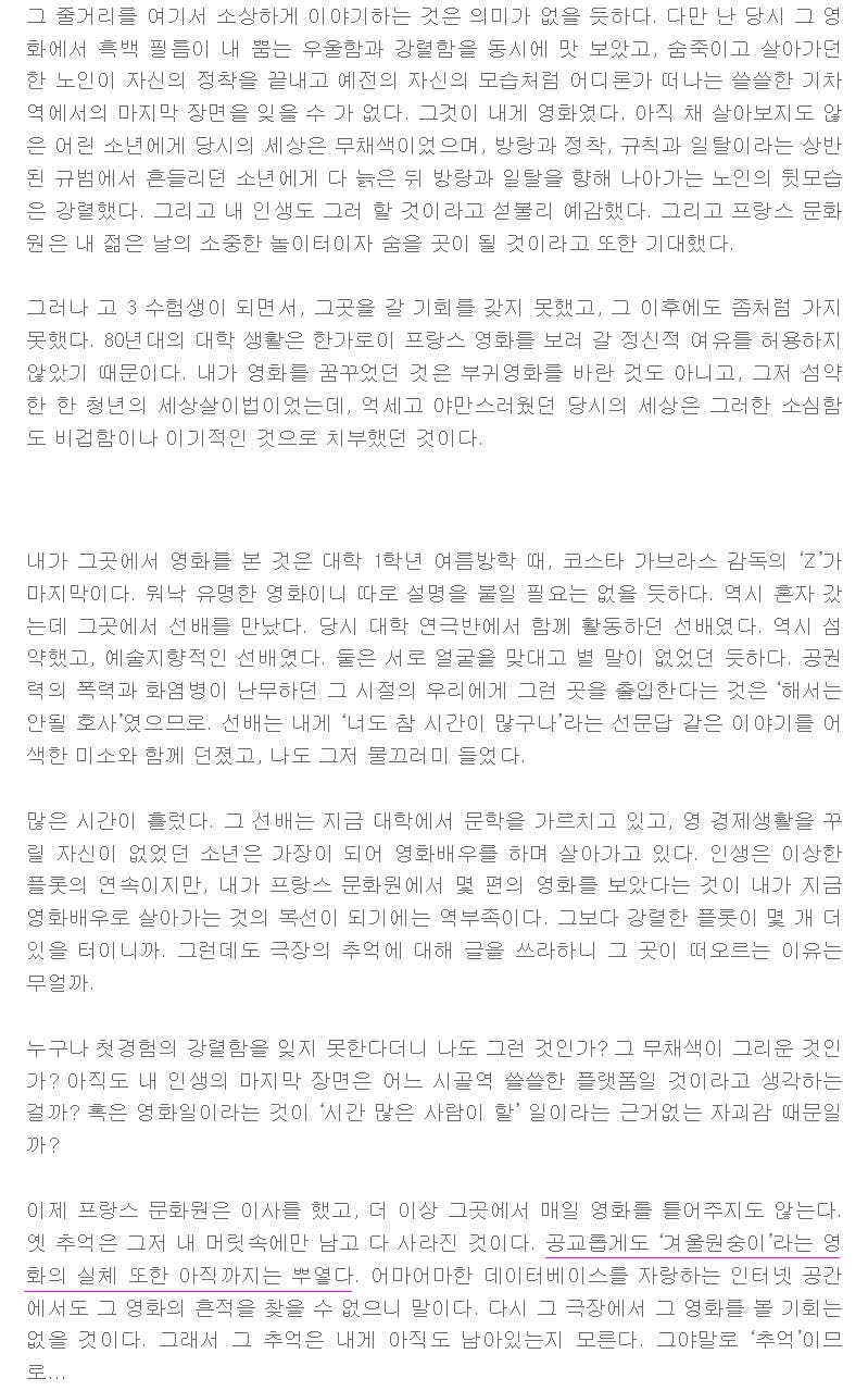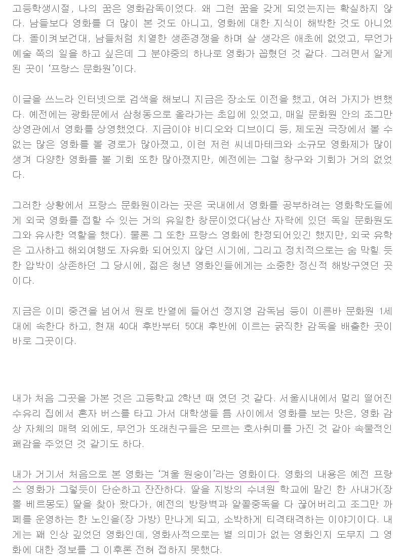 어린시절 부터 영화를 사랑했던 영화 배우, 정.진.영. 오래된 이 특별칼럼을 읽다가 나는 그의 추억 속 영화인, '겨울 원숭이'가 궁금 해 졌다.