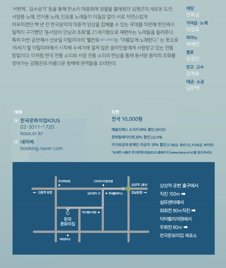 •장소: 한국문화의집 코우스 [map] 서울시 강남구 테헤란로 92길 12-9