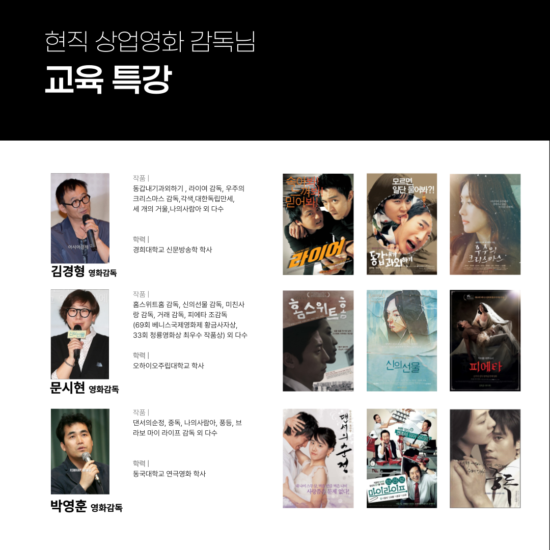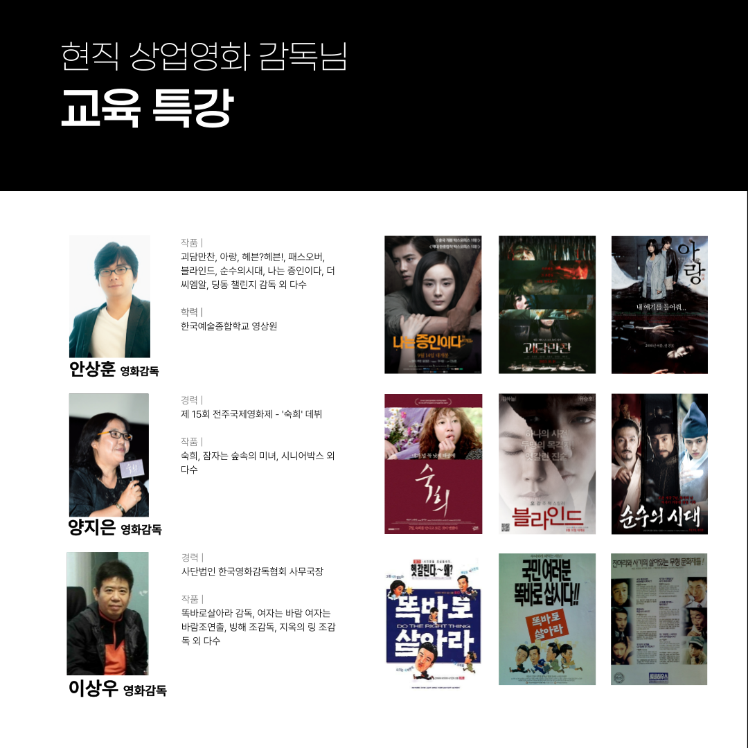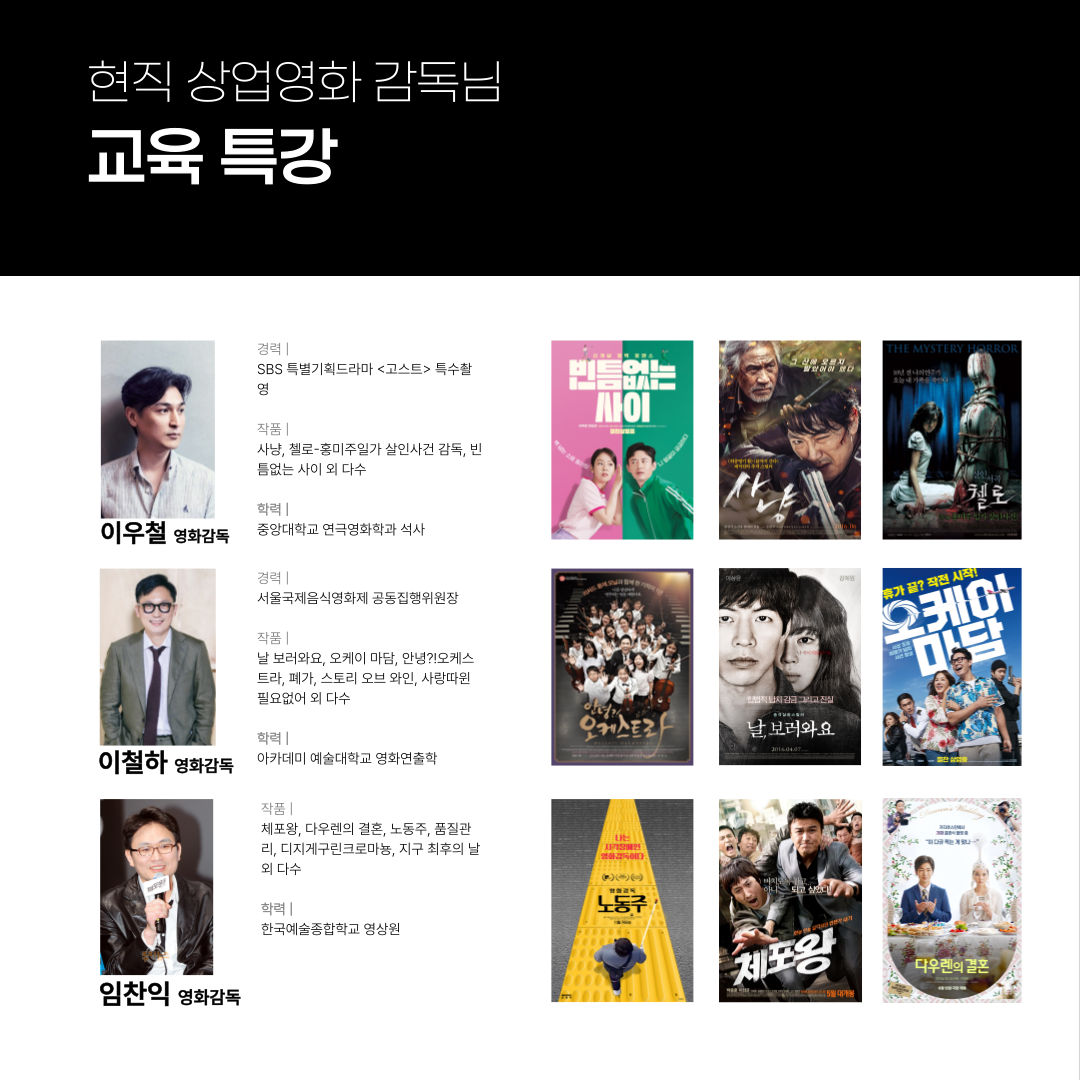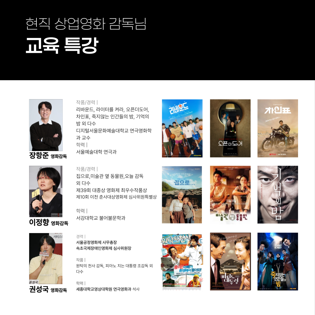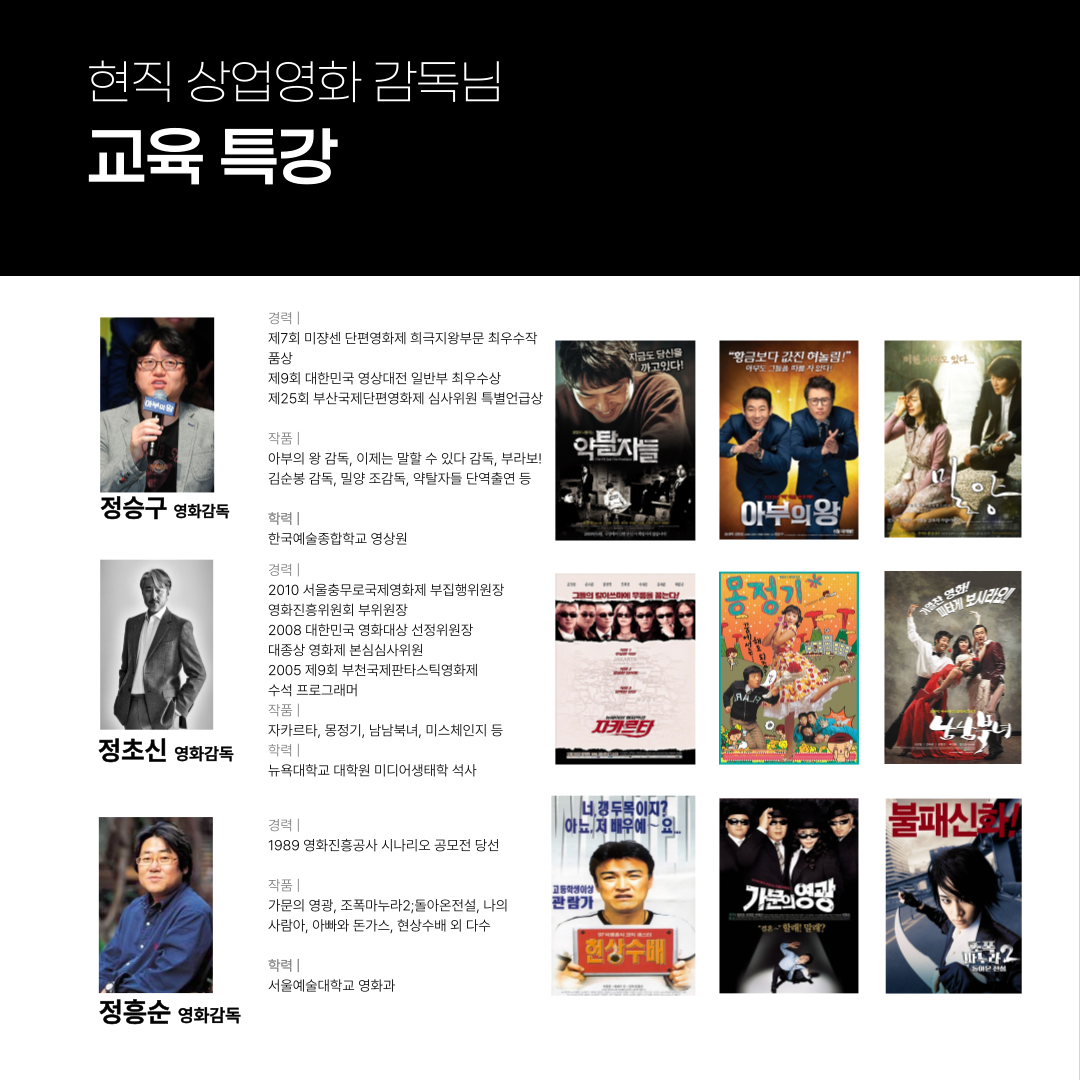 | 일급정보 | 현직 상업 영화 감독님들과 함께하는 국내 최대 규모 프로젝트 [ACTOR PLAYER] | 2024.07.10 |