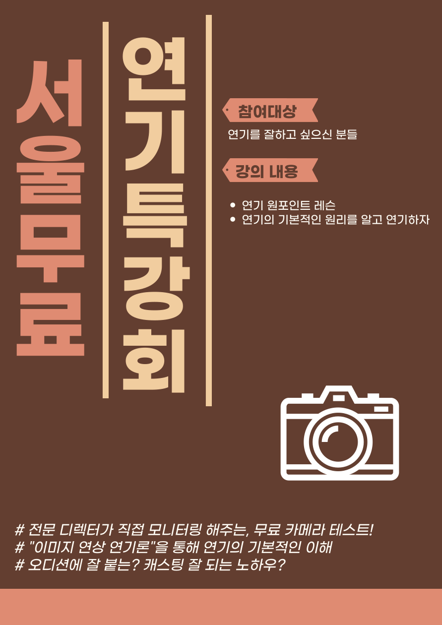10월 27일(일) 무료 연기 특강 진행됩니다 배우분들이 오디션에서 캐스팅 되지 않는 이유,